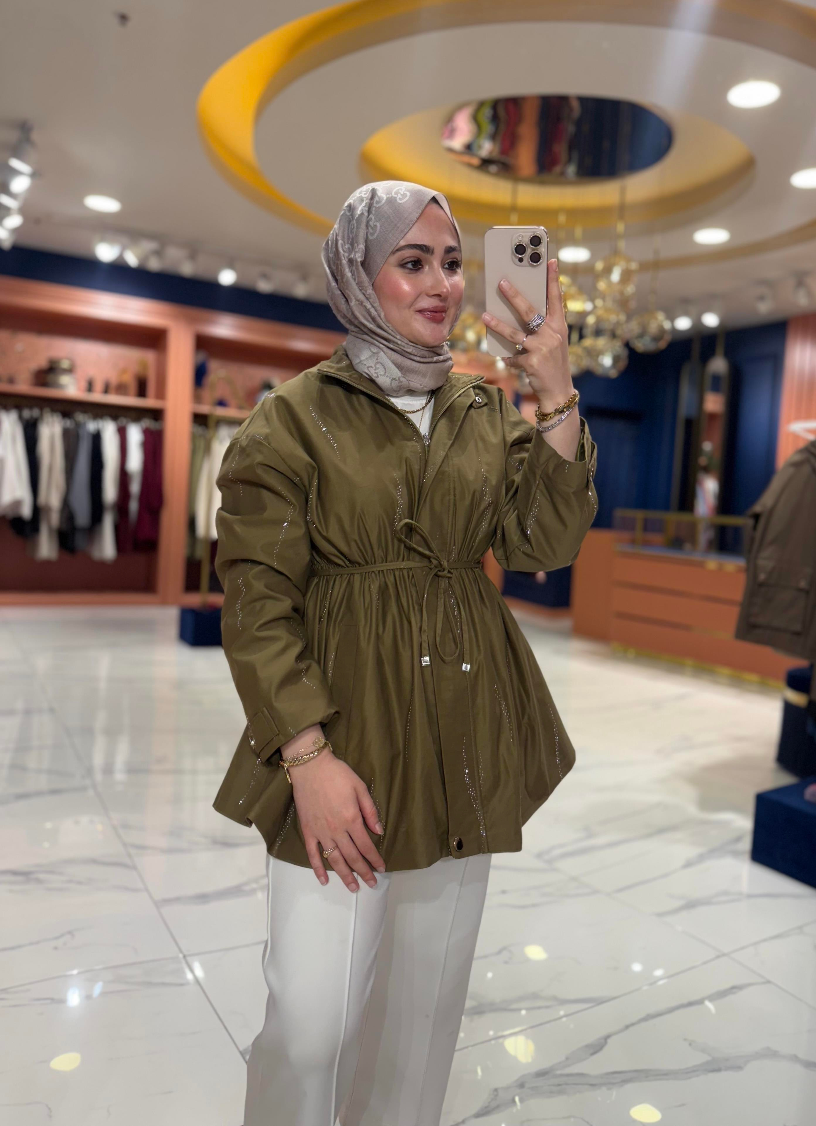 Belden Büzgülü Trençkot  | Siyah Belden Büzgülü Trençkot | Haki