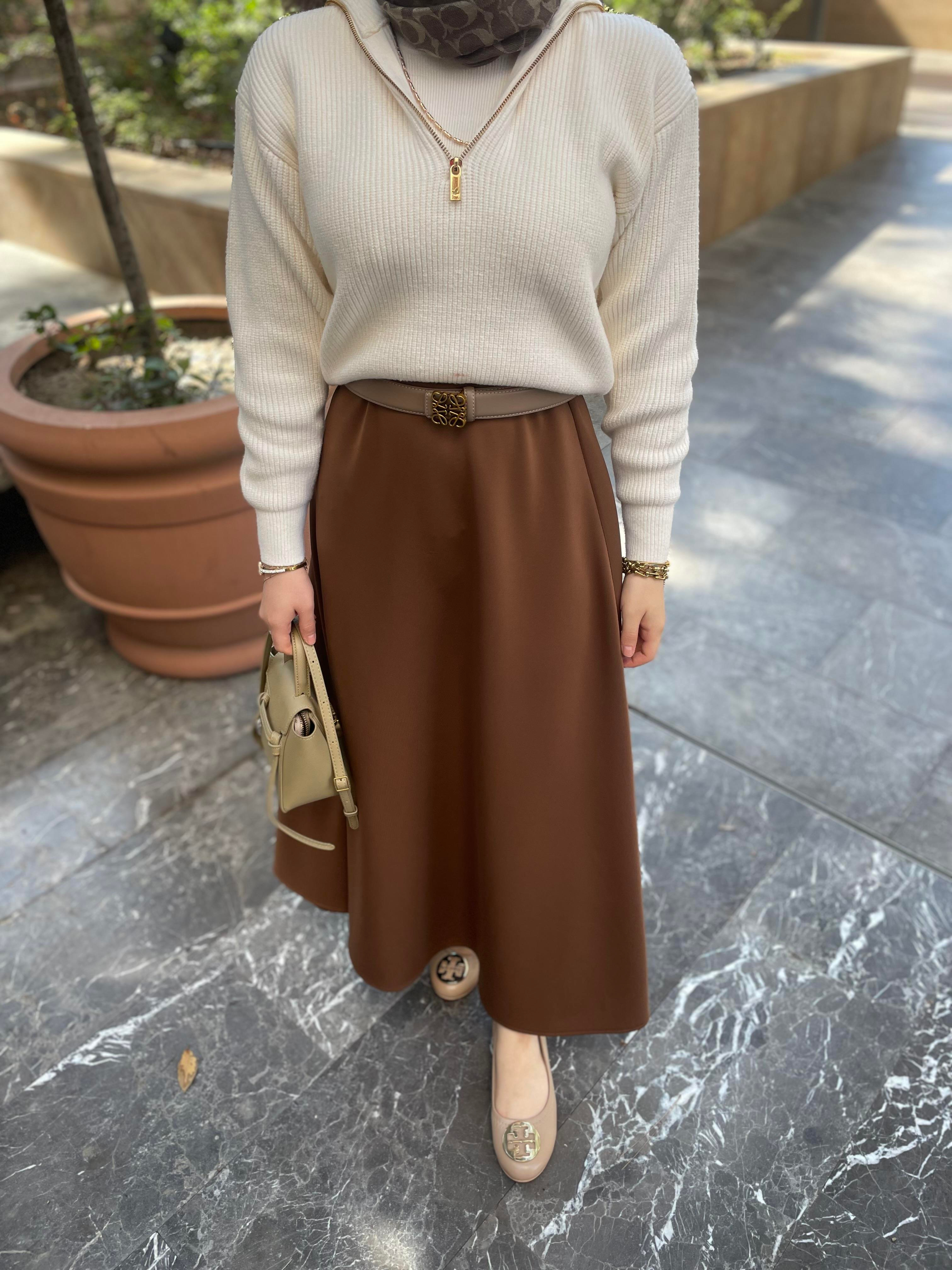 Marka Fermuarlı Örme Kazak Ekru